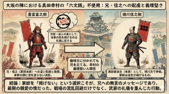 大坂の陣において、幸村があえて六文銭を使わなかった最大の理由、それは敵方となった兄・信之(真田本家)への深い配慮と敬意があったからです。