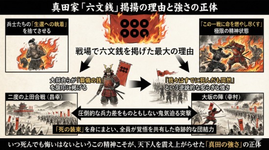 つまり、六文銭は単なる部隊のマークではなく、武士たちの心を恐怖から解放し、最強の戦士へと変貌させるための「精神的なトリガー」だったと言えるでしょう。