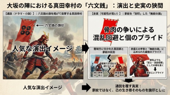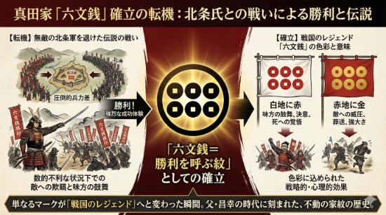 つまり、この一戦を通じて、六文銭は単なる家柄の証明を超え、真田と戦うことの恐怖を敵の脳裏に刻み込む、最強のトレードマークへと進化したのです。