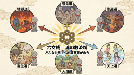 - 地獄・餓鬼・修羅…六文銭が救う6つの世界