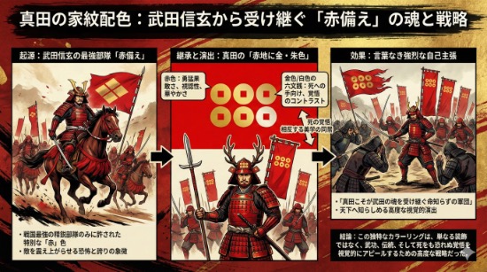 つまり、この独特なカラーリングは、「真田こそが武田の魂を受け継ぐ命知らずの軍団である」という強烈な自己主張を、言葉を使わずに天下へ知らしめるための高度な演出だったのです。