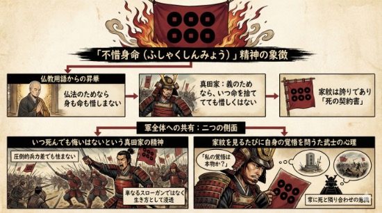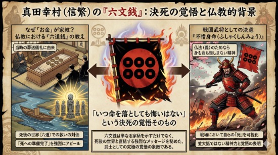 六文銭を旗印に掲げる行為は、真田一族が貫いた**「不惜身命(ふしゃくしんみょう)」**という壮絶な精神そのものを象徴しています。
